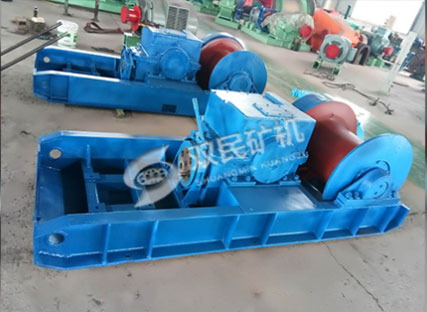 主要結構機械部分:主軸裝置、減速器、聯軸器、制動器、液壓站、深度指示器及其傳動裝置、測速發電機裝置、護板、護罩、護欄。輔助機械部分:司機椅子、導向輪和天輪、車槽裝置。電器部分:主電機及電氣拖動裝置、電器控制裝置、電器保護裝置。電動機通過減速器驅動卷揚筒旋轉,鋼絲繩一端固定在卷筒上,另一端經卷筒纏繞后,通過井架天輪懸掛提升容器。隨著卷筒的旋轉,實現容器的上升和下放。
