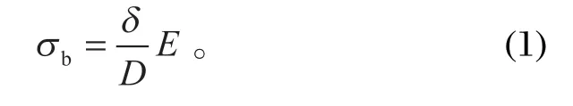 張家銘研究了纏繞式提升機(jī)鋼絲繩的振動(dòng)和繩鼓力學(xué)特性。假設(shè)沒有進(jìn)行捻制的鋼絲繩直徑為 δ,鋼絲繩在直徑為 D 的摩擦輪 (天輪) 上彎曲,此時(shí),鋼絲繩的彎曲應(yīng)力