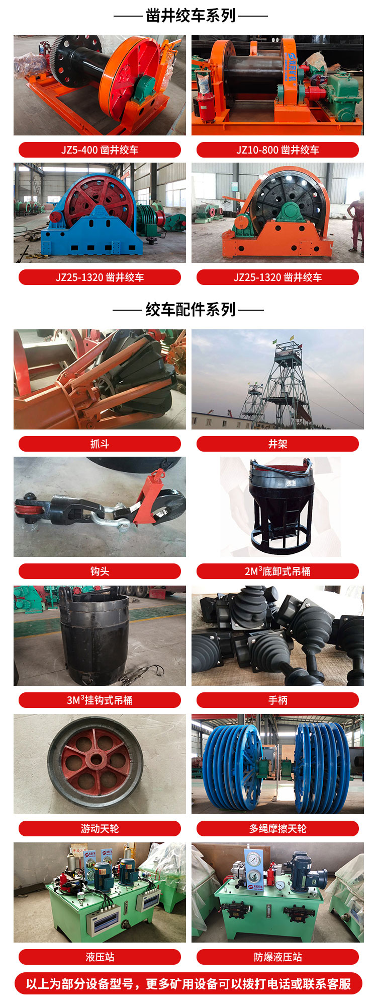 鑿井絞車及礦山各種成套設(shè)備及配件。
